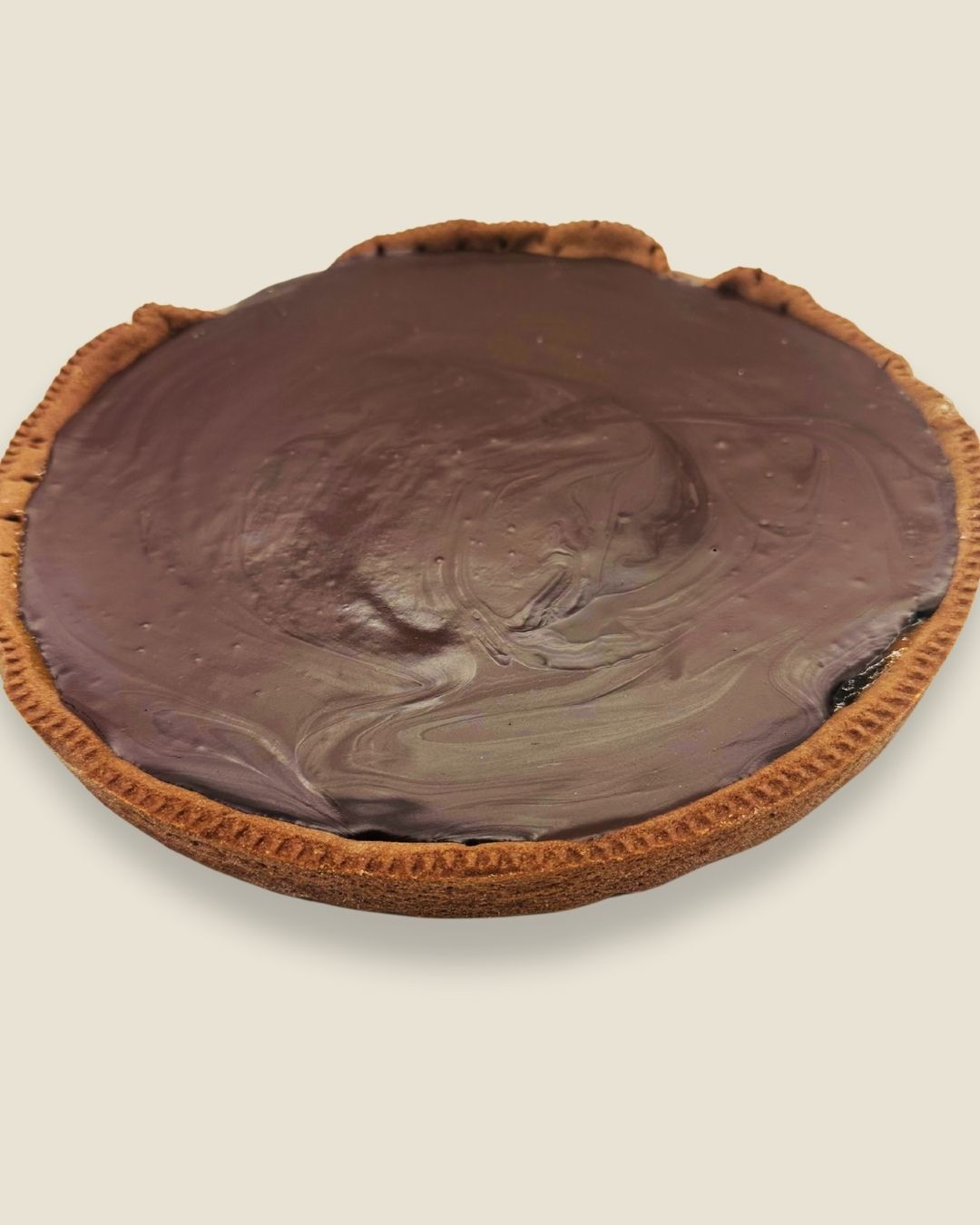 Crostata con frolla al cioccolato ripiena di marmellata di albicocche e ricoperta di ganache al cioccolato