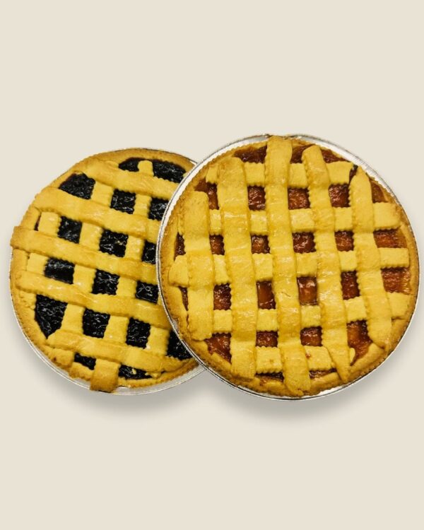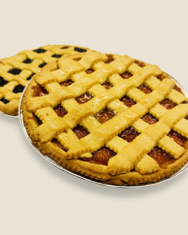 Crostate di frolla delicata farcite con gusti misti (albicocca,fragola,frutti di bosco,mirtilli,ciliegia)